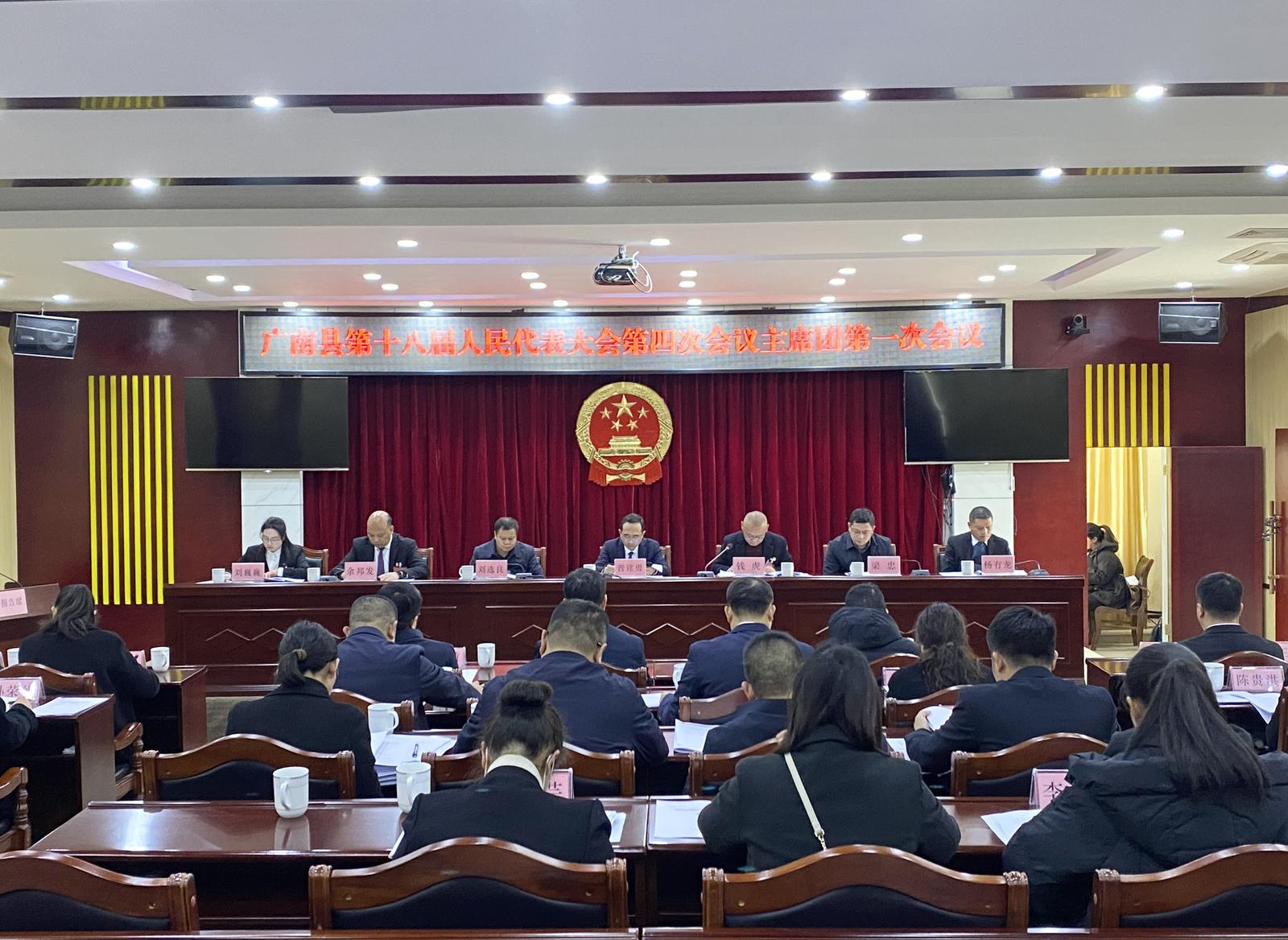 2月25日下午,广南县第十八届人民代表大会第四次会议主席团第一次会议在县人大四楼常委会会议室举行。