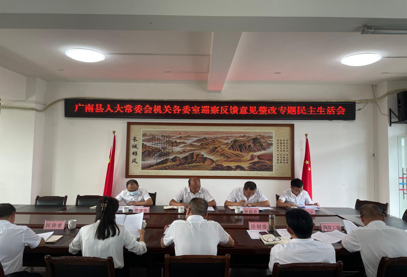 6月6日下午,广南县人大常委会机关各委室召开巡察反馈意见整改专题民主生活会。县...